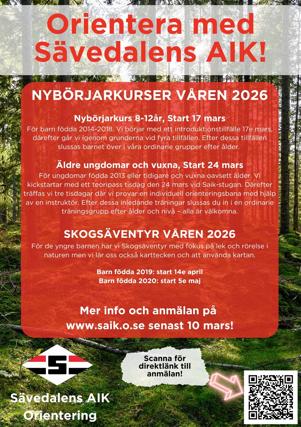 Under våren har vi nybörjarkurser för både barn, ungdomar och vuxna där vi går igenom grunderna i orientering.